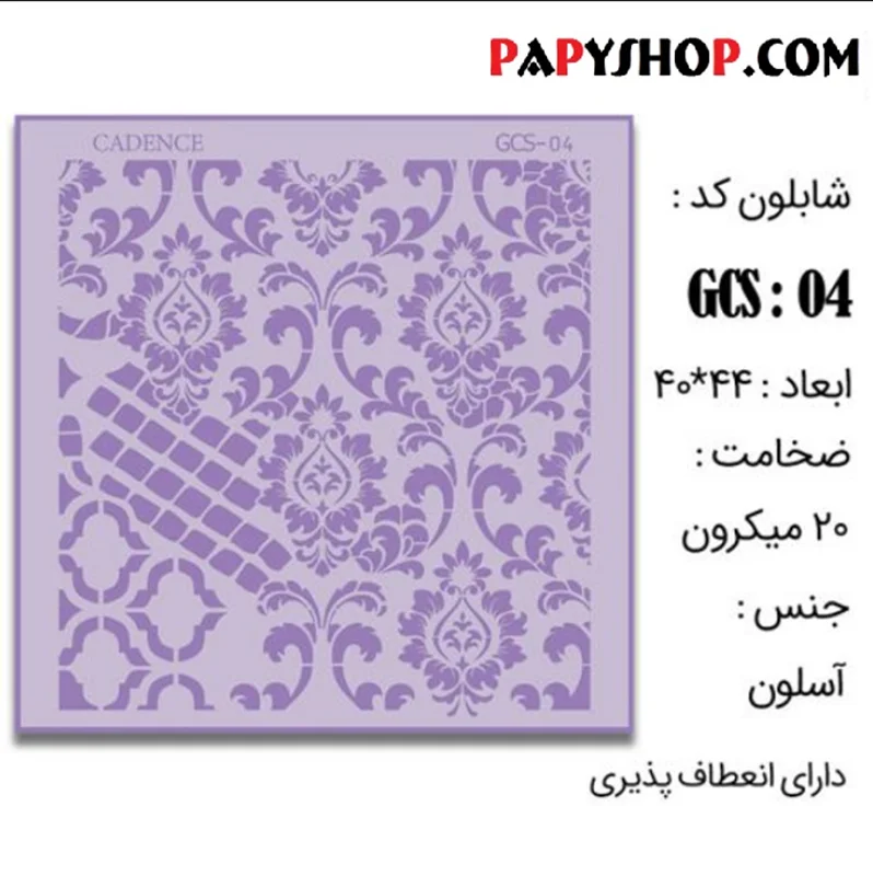 شابلون استنسیل 44*40 کادنس کد GCS004 طرح مدرن دیوار شابلون استنسیل کادنس از طلق نازک و انعطاف پذیر تهیه شده و به راحتی بر روی هر سطحی قرار می گیرد.این محصول بر روی سطوح دیوار،پارچه،چوب،فلز و ... قابل استفاده است و برای فیکس کردن آن می توان ازاسپری چسب شابلون استفاده کرد.
